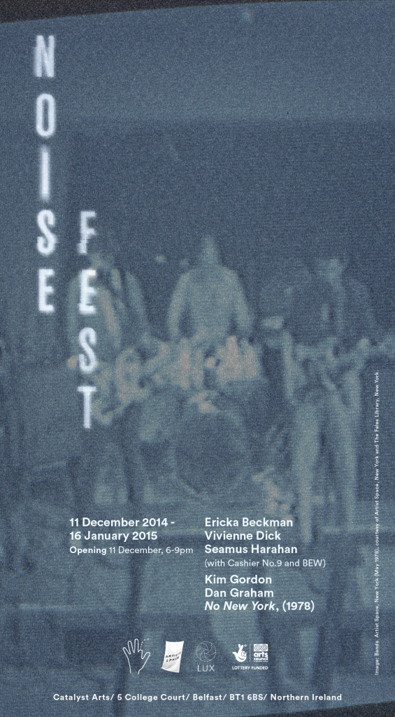 Considering the overlapping tensions inherent within music culture and contemporary art practice, ‘NOISE FEST’ brings together the work of Ericka Beckman, Vivienne Dick, and Seamus Harahan. Collectively harnessing a vocabulary and sensibility that oscillates and slips between clear categories of distinction, the works incorporate the disparate tropes of experimental filmmaking with the aesthetic rhetoric of pseudo music documentary and video.