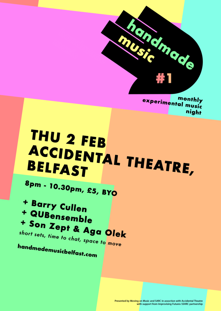 Handmade Music is a brand-new experimental music night in Belfast specially curated by Moving on Music and The Sonic Arts Research Centre (SARC).