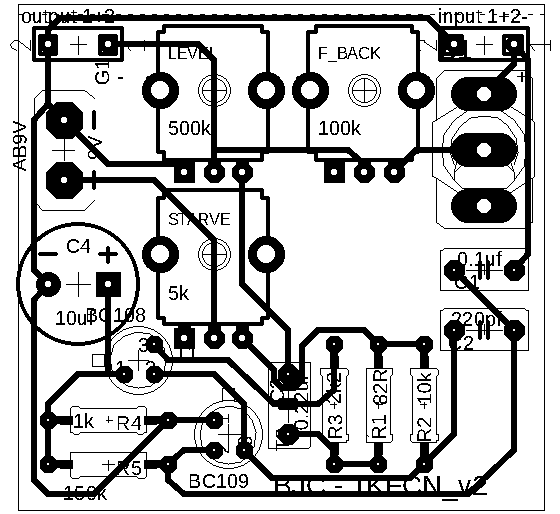 Classic fuzz effect circuit with feedback and power starve.