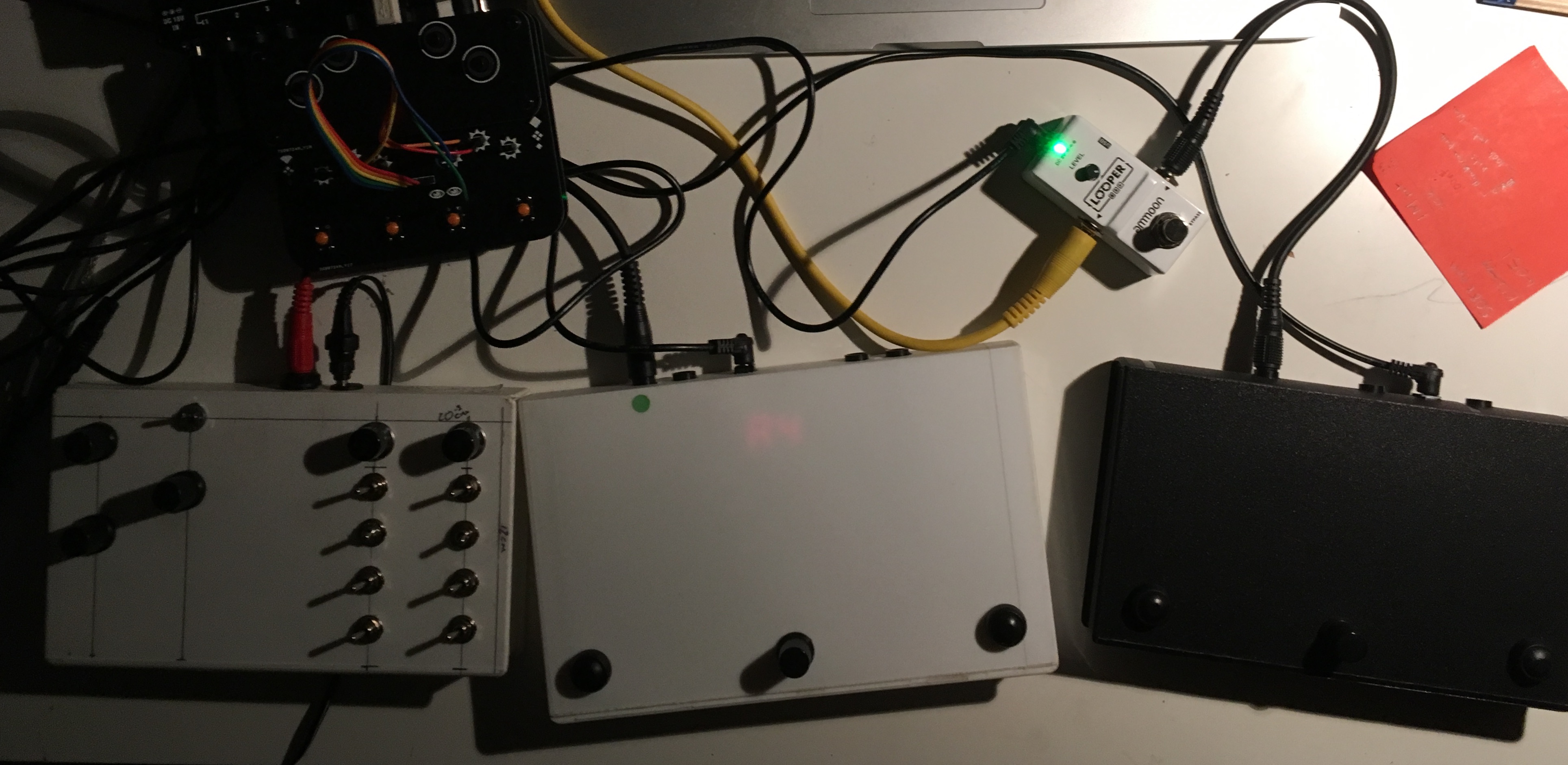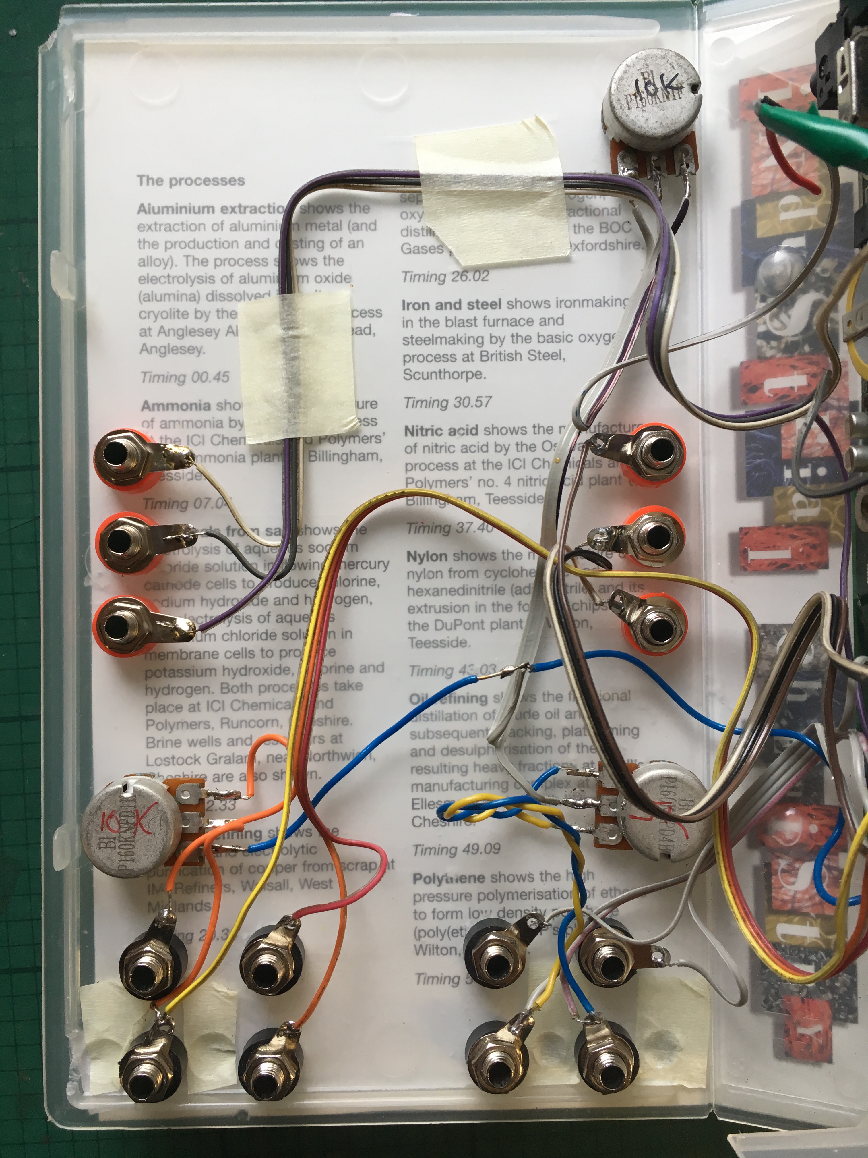 I was gifted a number of multi-effects units, some functioning with noise, others beyond repair. I decided to circuit bend them in the hope that some colourful noises would be produced during play. Each of the circuits produced some sounds which had the potential to be modified with extra controls.