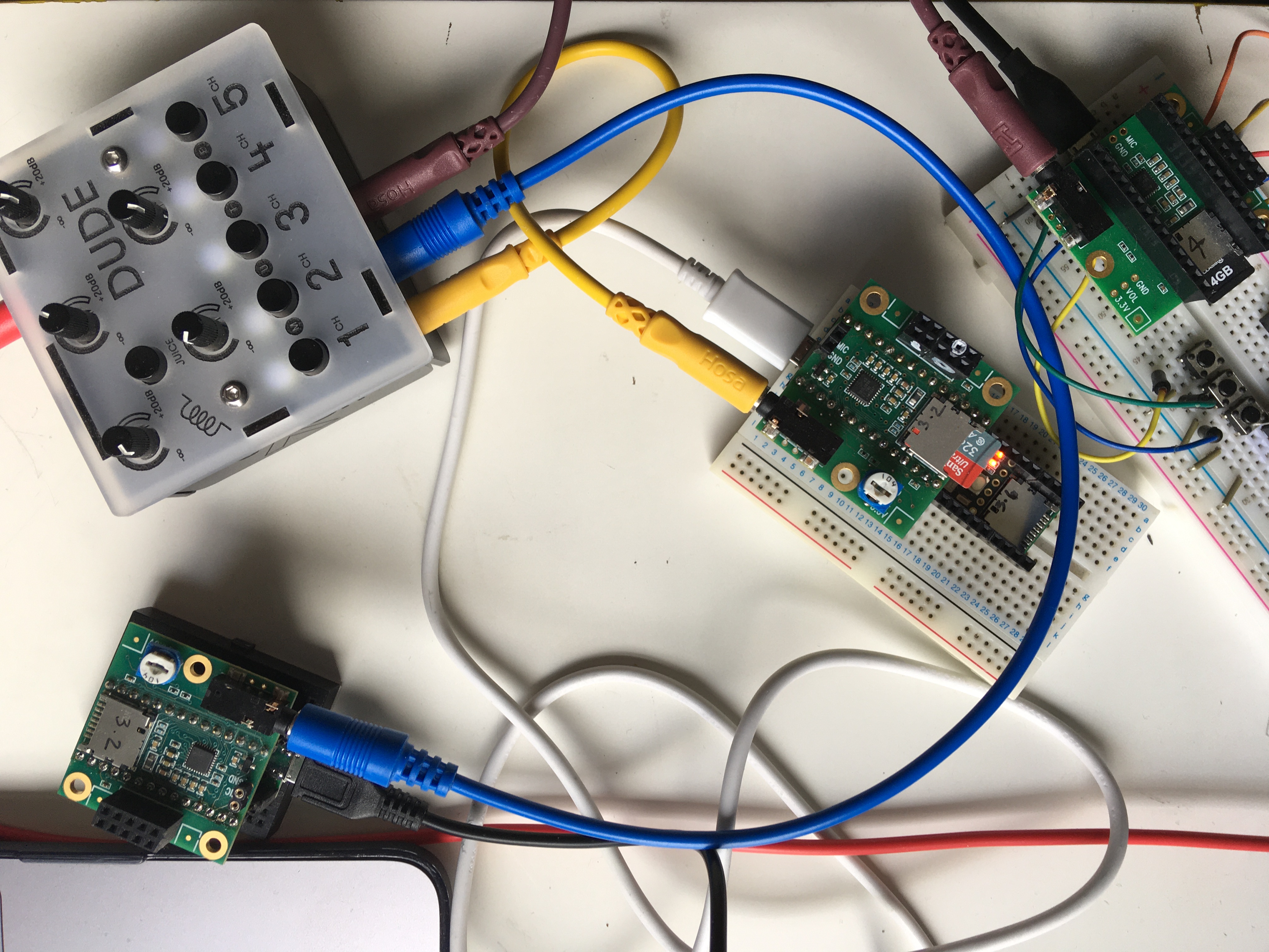 This version is a reduced version of the design, making fewer parameters available to players. The digital sound generators can be cleaner than those in the earliest versions of the instrument, there is some clock noise still audible on some settings which will be reduced by revising the use of the DAC.