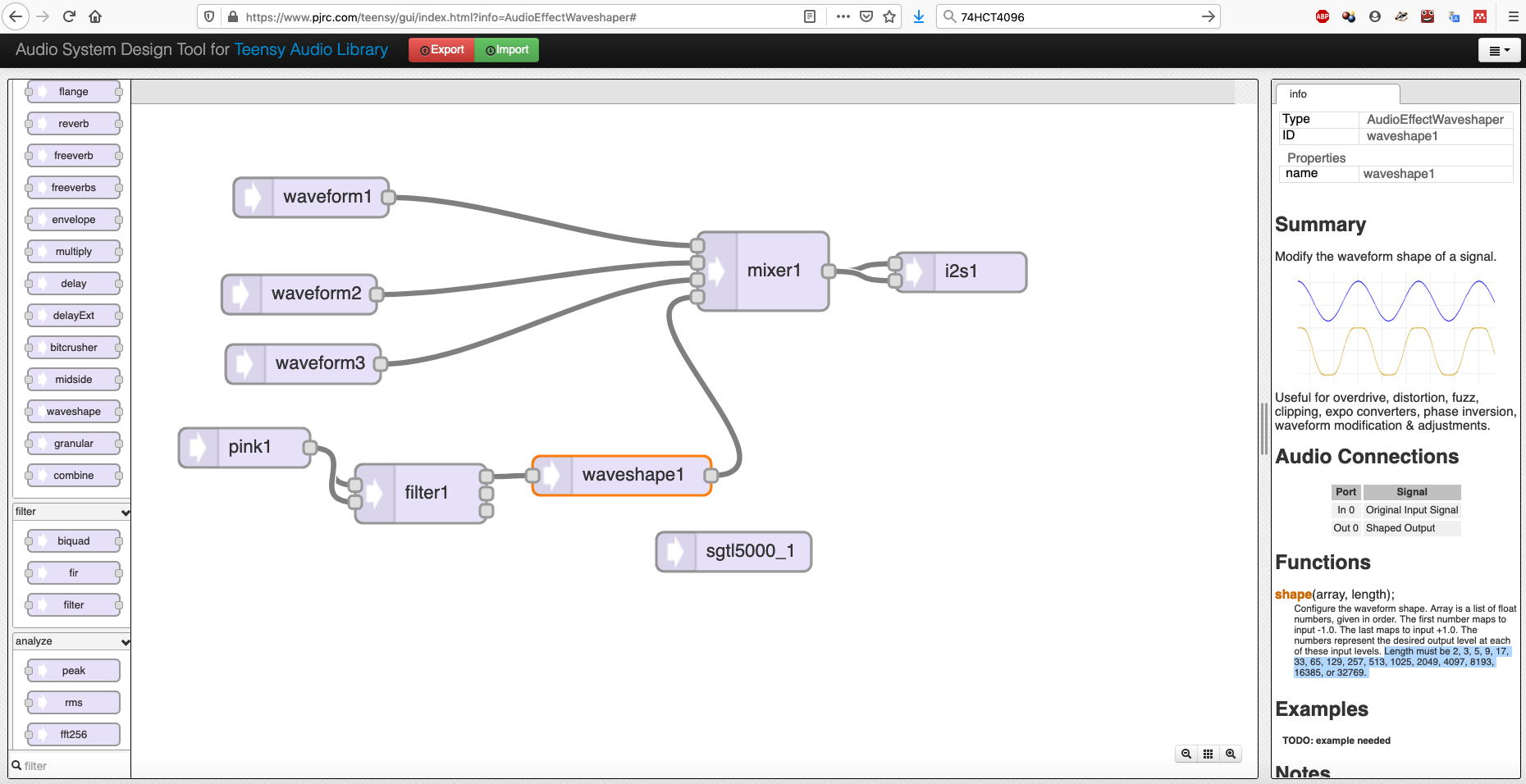 PJRC created a GUI to compose the audio settings before further editing on the Arduino: