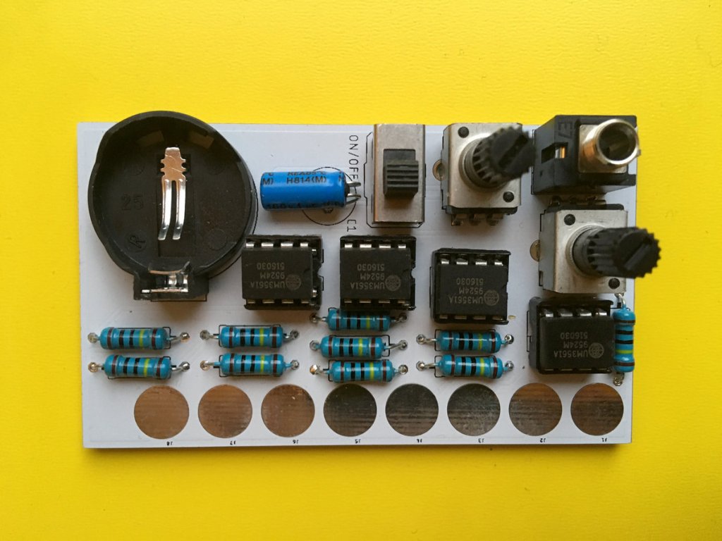 This DIY EMI has potentiometers to control voltage starve & volume as well as a switch to change the ‘bent’ character of the sound.