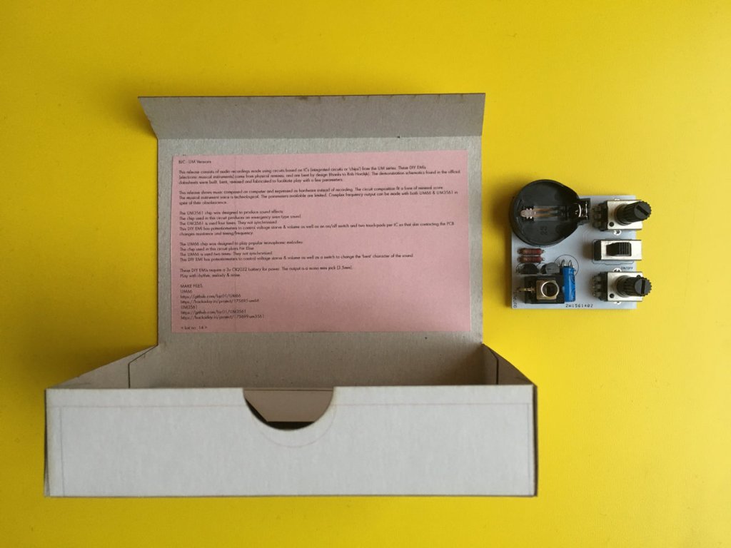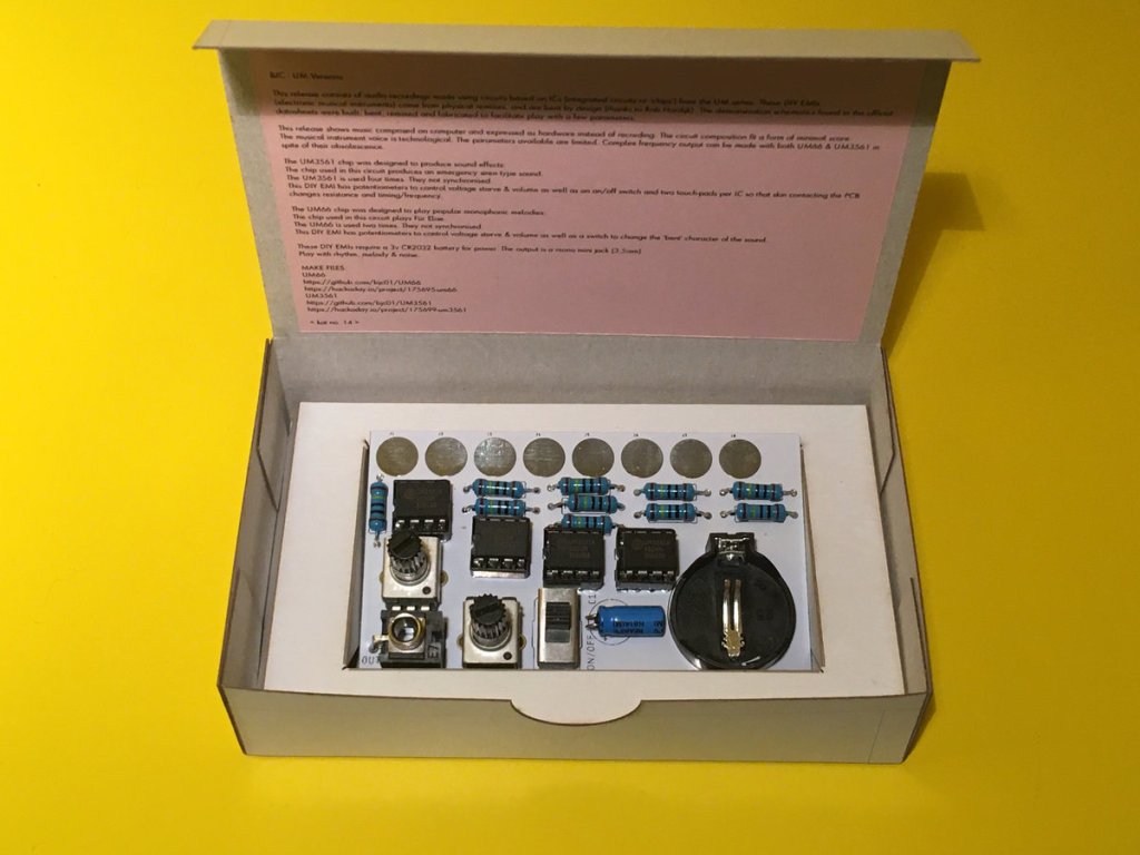 This release shows music composed on computer and expressed as hardware instead of recording. The circuit composition can be viewed as a form of score. The musical instrument voice is technological. The parameters available are limited. Complex frequency output can be made with both UM66 & UM3561 in spite of their obsolescence.